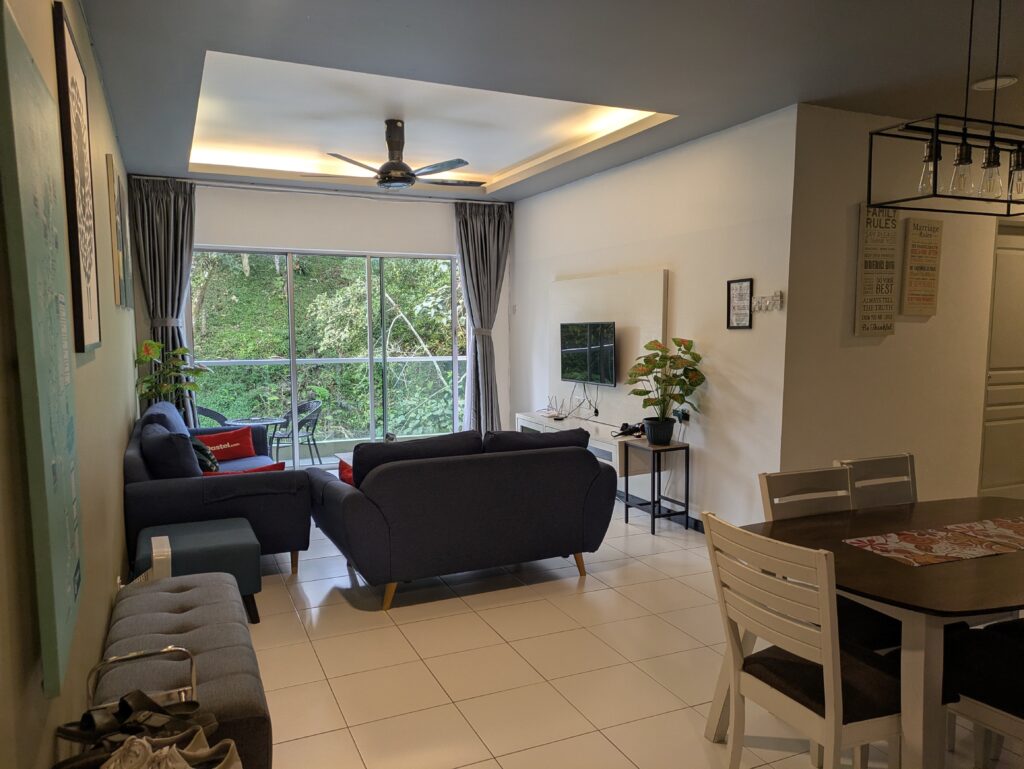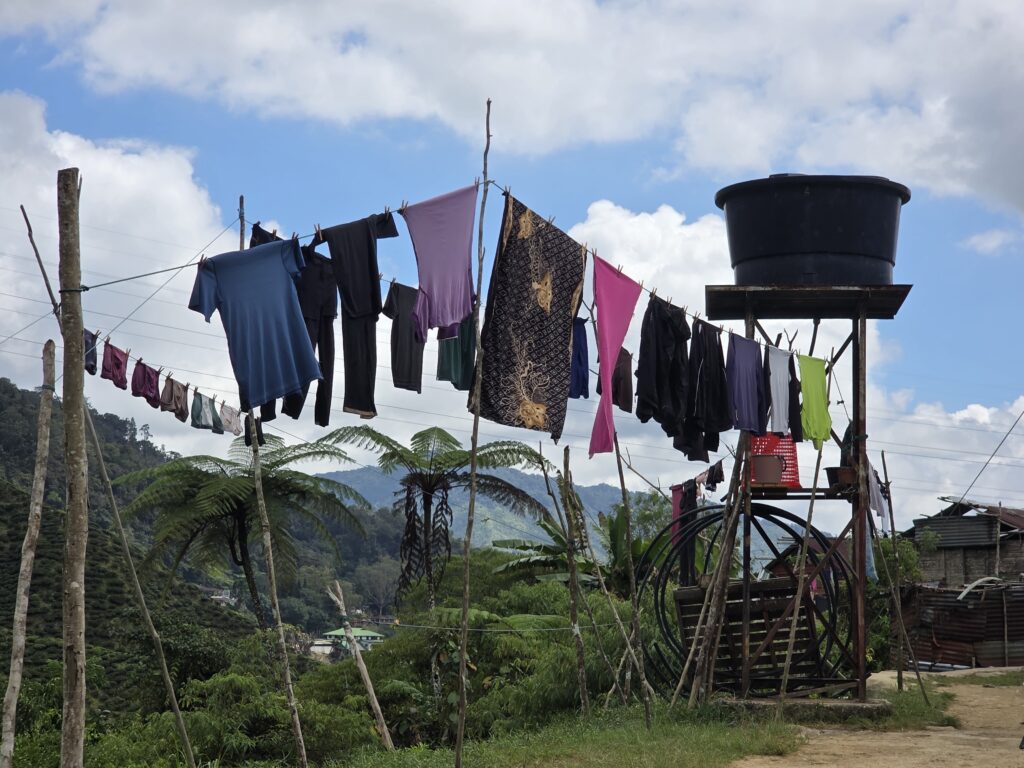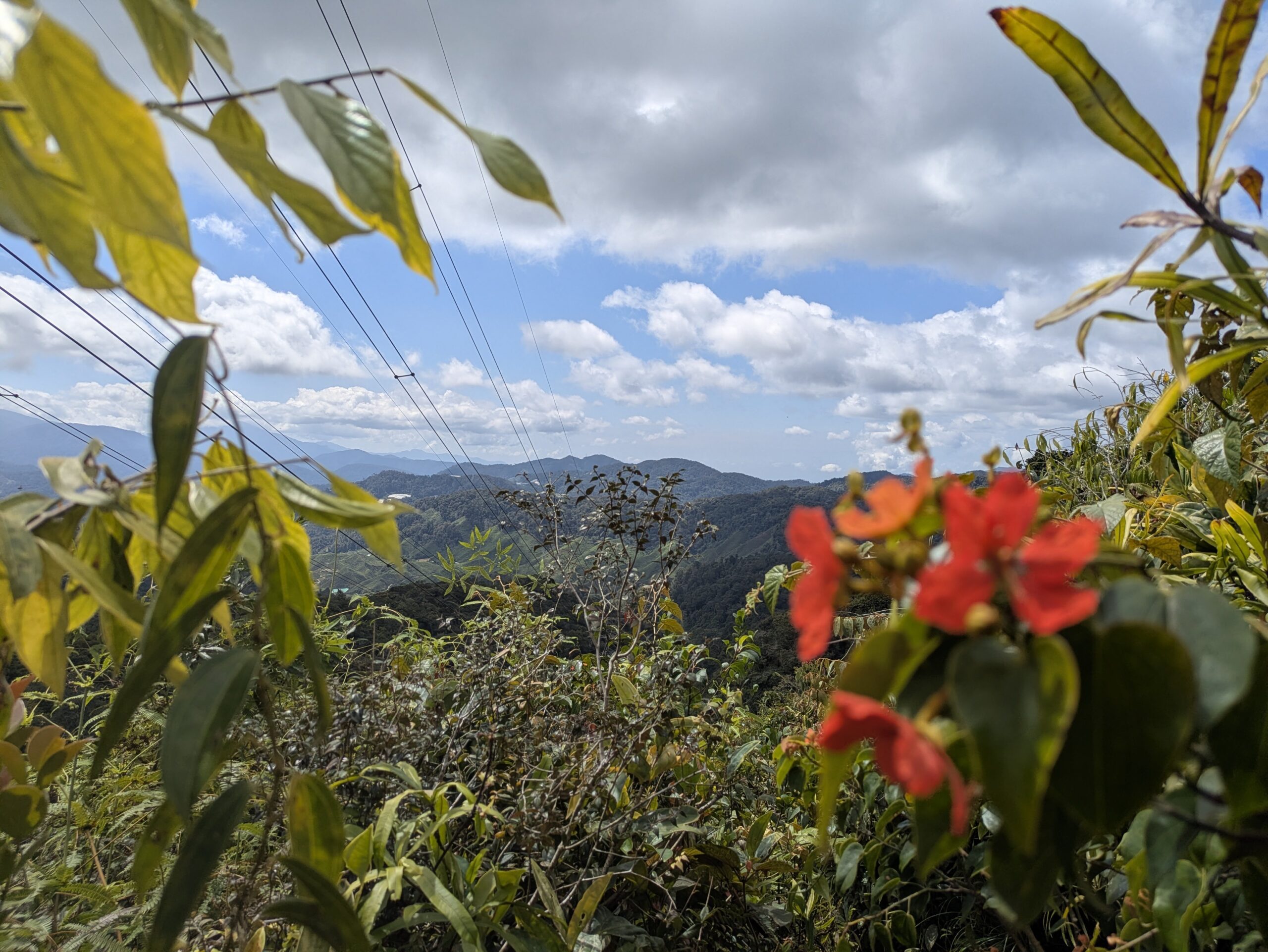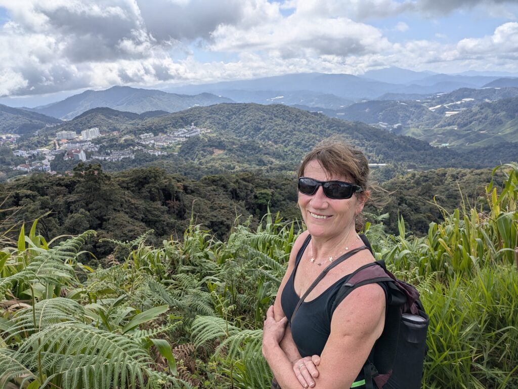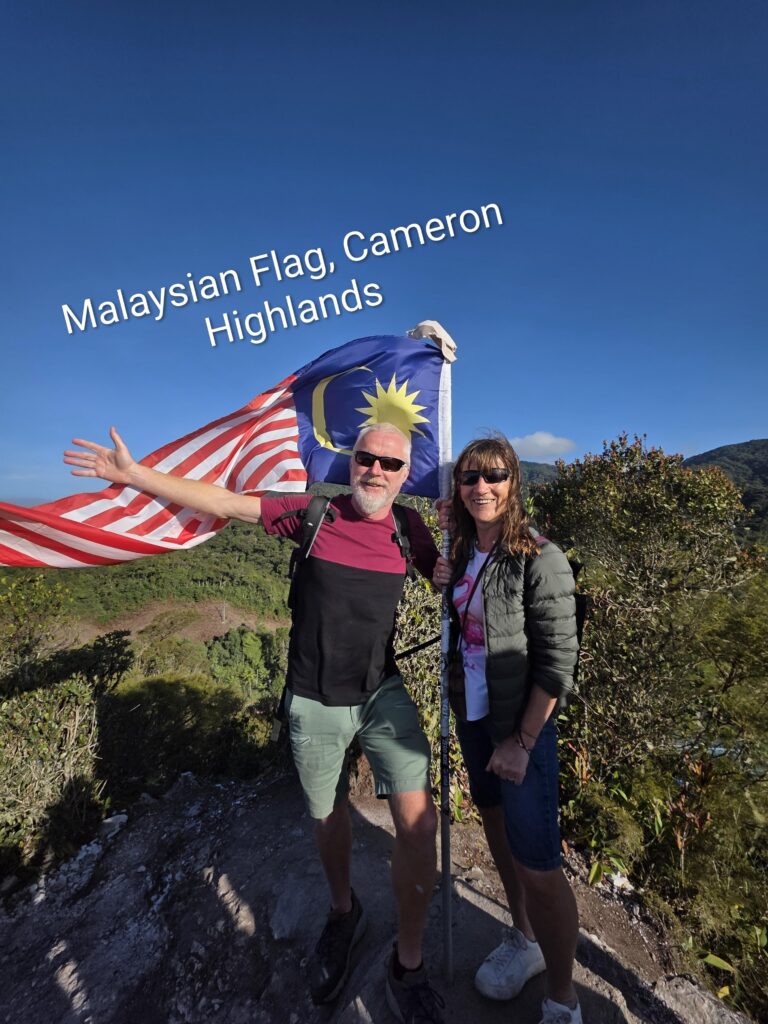 Finally we crawled into the bus station in Tanah Rata, the main town in the Cameron Highlands, and inhaled the cool mountain air. There was a bank of cloud overhead and we were thinking of pulling jumpers from our bags…items that we didn’t think we would get to wear. Our accommodation was just a 10-minute uphill walk from the bus terminal, a co-living apartment with three bedrooms, a shared kitchen and living room with terrace, which we were sharing the first night with two young French guys.