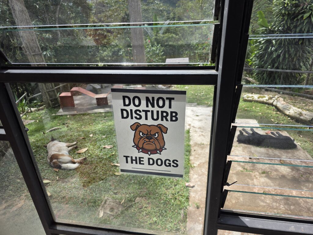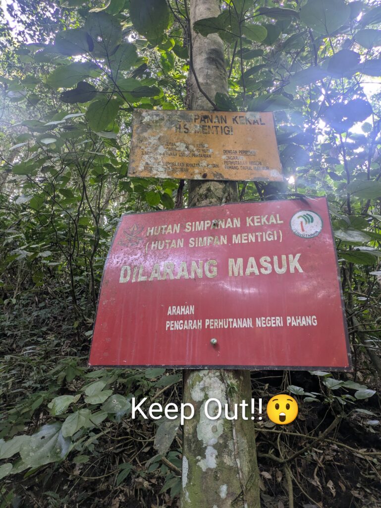 The following day we did another hike which was much more difficult, through thick jungle with overgrown paths, some blocked by fallen trees.  About three quarters of the way to the highest point, we discovered that the large signs in Malay which we thought were place names, actually said No Entry and Keep Out, with the help of Google Translate. Our descent by a more established path was easier.