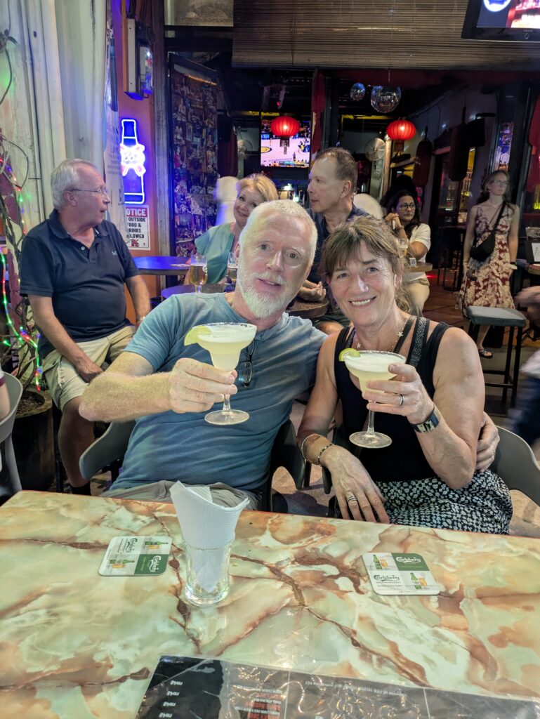 Penang has been described as one of the easiest cities in Asia to walk around but whoever said that certainly wasn’t walking the same streets that we were on. The pavements were difficult to negotiate, blocked by cars, motorbikes, shops that spilled their wares onto the footpaths, lots of broken steps and slopes. Most of the time we had no option but to walk on the road which was nerve-racking with scooters whizzing by and there was a lack of pedestrian crossings. But we loved the energy, the history, the food and of course, the margaritas.