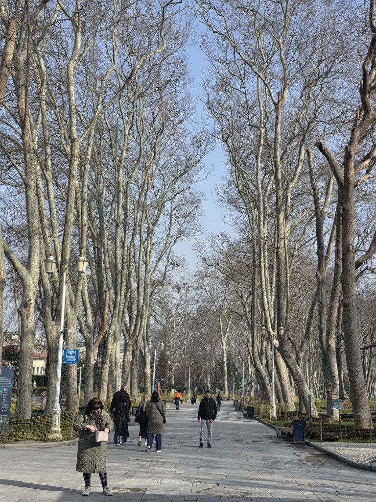 After the green, lush tropical vegetation of Malaysia and Thailand, the bare branches of the trees in the many parks looked strange and almost skeletal. The days were sunny and cool with a hint of Spring after a hard winter. Istanbul is on a mission to regain a reputation for tulips, which actually originated in Asia (not the Netherlands) and were extensively cultivated in the Ottoman Empire. It was too early to see any of them in flower but there’s a Tulip Festival in mid-April.