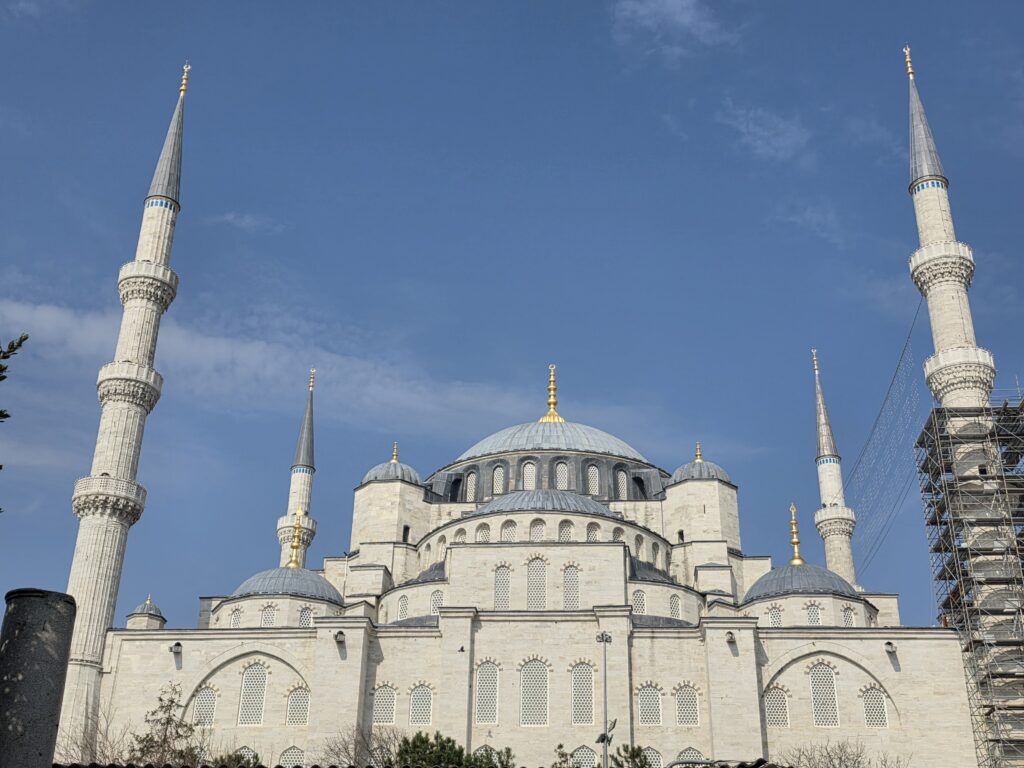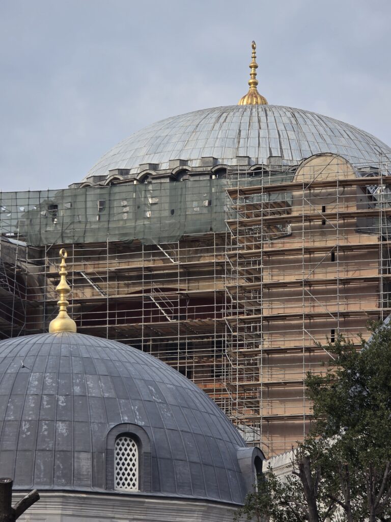 Istanbul was not a cheap destination. According to our walking tour guide, Haktan, inflation was running at more than 30% annually for several consecutive years and the costs of visiting the main tourists sights have risen dramatically last year and again in January this year. Although the Hagia Sofia is propped up with scaffolding for ongoing maintenance, a visit will set you back €50 per person, the Topkapi Palace is even more expensive to visit. Try to avoid Fridays when visiting the Hagia Sophia as it is closed to visitors from midday to 2,30pm during prayer-time and is extremely busy all day. The museum of the Hagia is well worth a visit, giving a multisensory tour of the seventeen centuries of the building’s history.