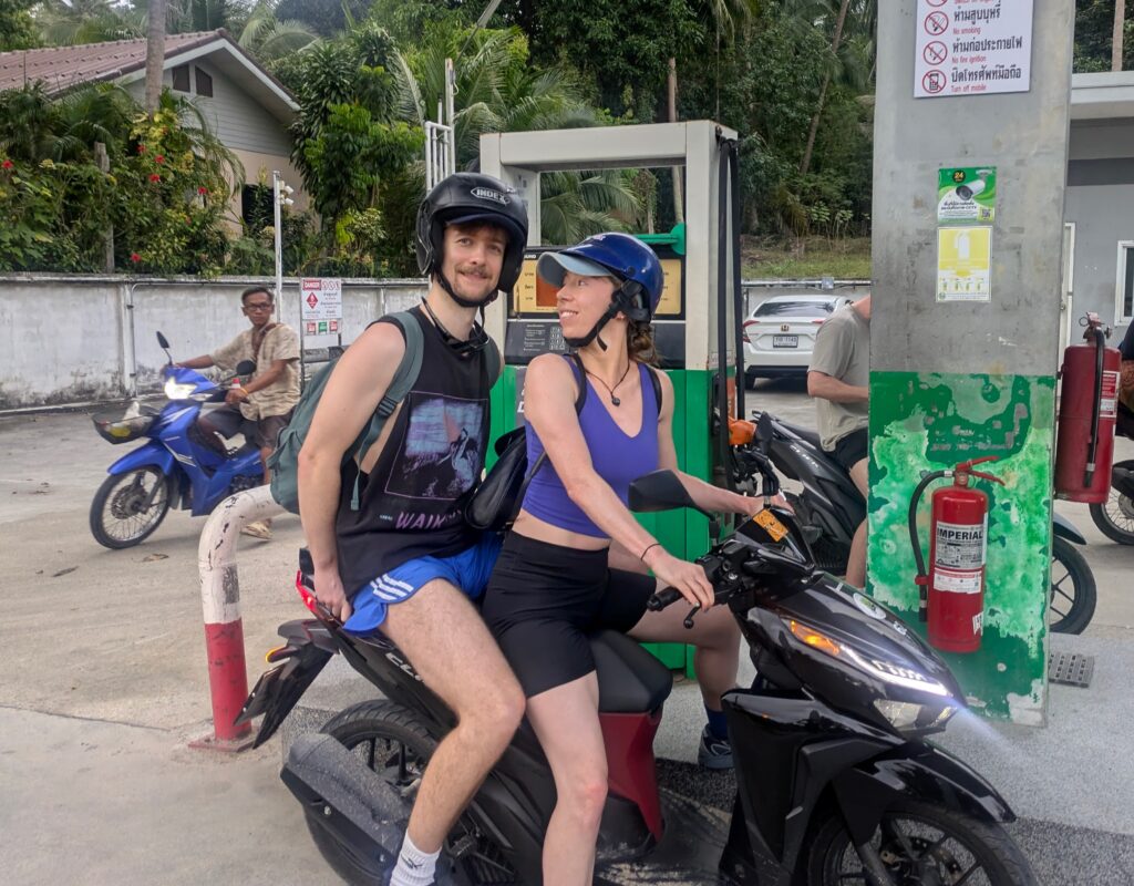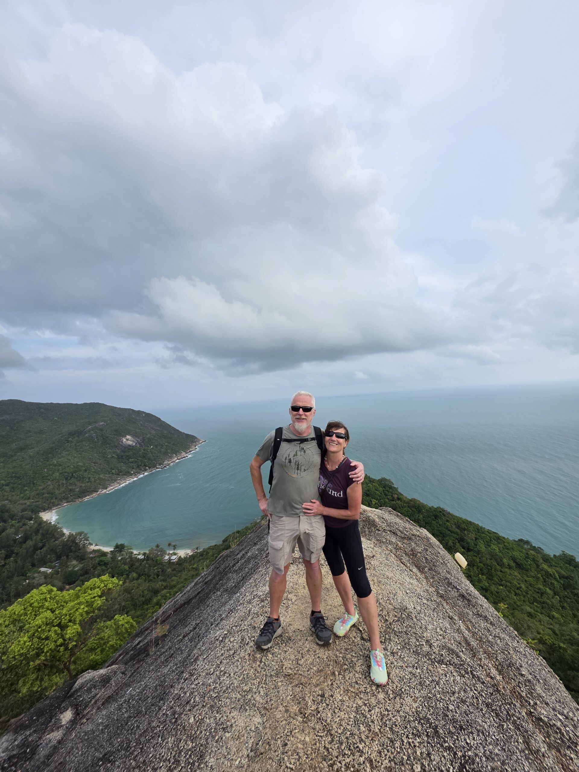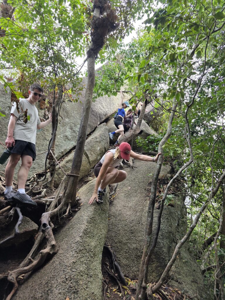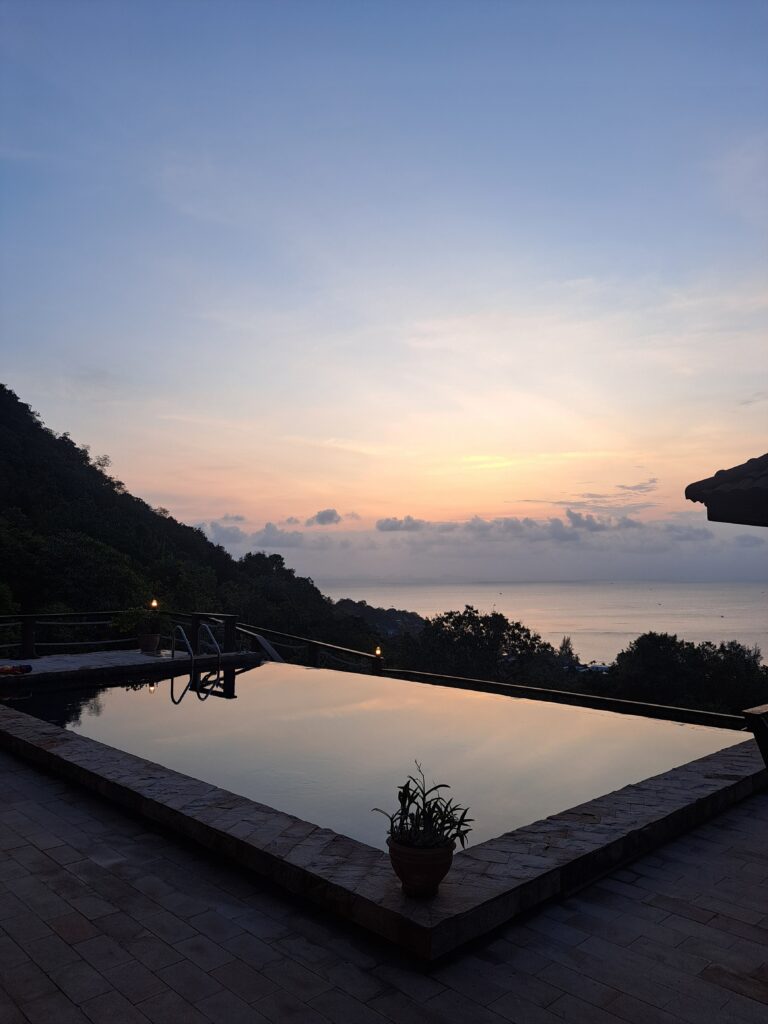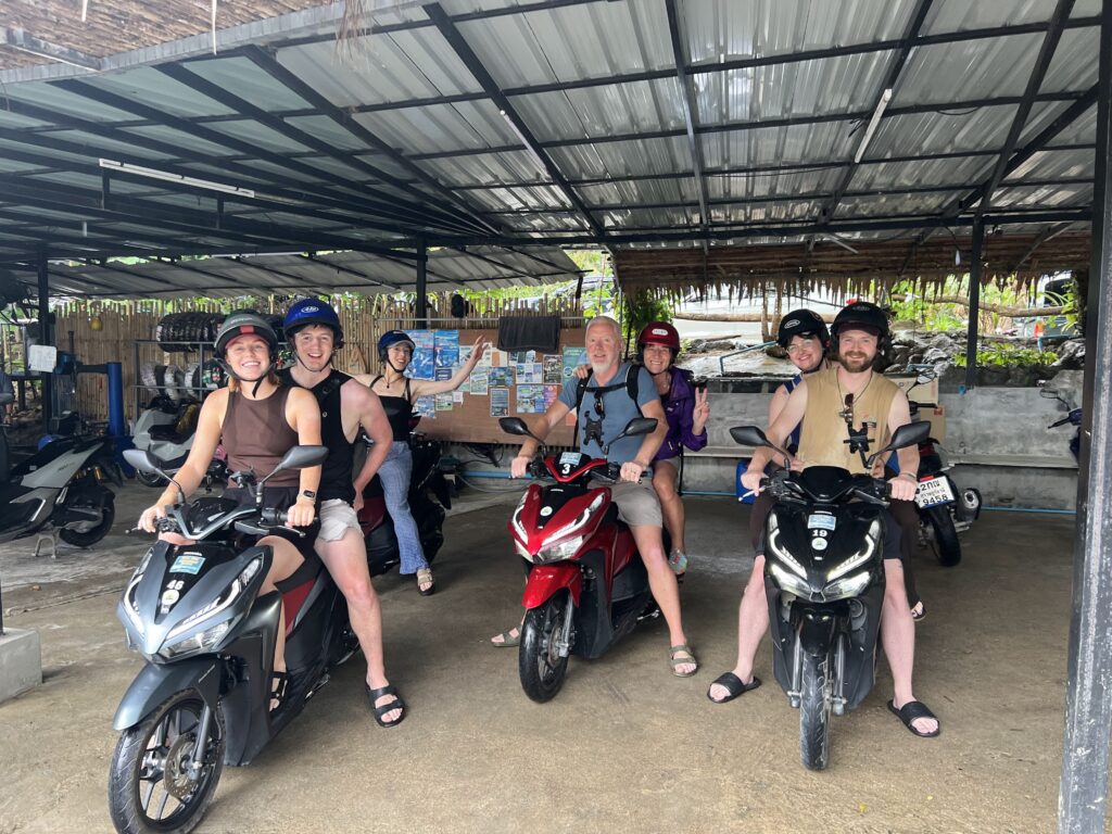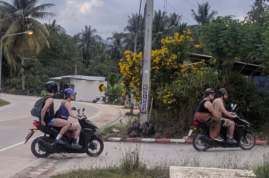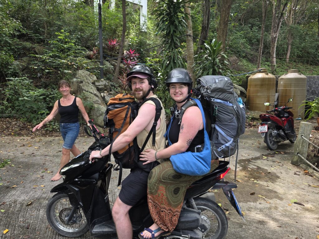 The most popular way to get around the island was by motorbike as the shared taxis were relatively expensive (costing almost €6 per person for short rides with no negotiation on price) so each couple rented a bike at €7.50 a day. There was something both liberating and exhilarating about riding around the island’s hilly terrain, feeling the warm breeze wrap around us. It was a challenge to get up the extremely steep slope to our villa, without stalling or toppling over. This became even more challenging when the rains came in torrential downpours as they did most days, although we were supposedly in the high and dry season. It was a week of hikes, the most dramatic was to the viewpoint over Bottle Beach on the quieter Northern side of the island. The many beaches were white sand with warm water and ringed with restaurants serving delicious food, often Thai food with a Western twist and too often with western prices to match. There were pool games, card games, swimming both in the pool and the sea, massages and yoga classes, competitions to see who took hold their breath the longest underwater in the villa pool, sunset cocktails but most of all, there was laughter and chats without friction.